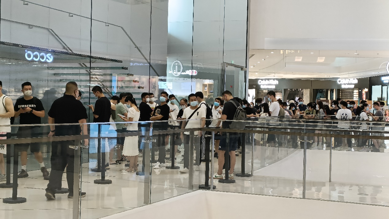 广州天环广场苹果直营店外排队的人群,图源:时代周报记者摄