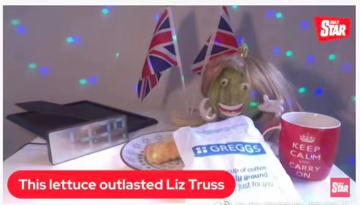 此前,英媒《每日星报》曾在10月14日把一颗生菜放在特拉斯的相片旁,然后开始直播生菜的腐烂过程,以此调侃特拉斯是否会在生菜保质期内下台。