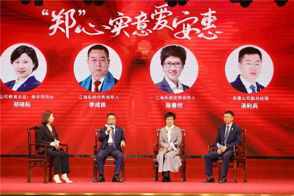 “‘郑’心实意爱安惠”环节,安惠公司教育总监、商学院院长郑晓耘采访了跟随安惠20年的安惠经销商和员工代表:江海系统高阶领导人路春欣、李成栋,安惠公司副总经理汤利兵。他们从安惠奠基时就选择携手同行,相互成就。他们坚定不移的选择和始终不变的初心,持续付出的努力和勇往直前的坚持成就了安惠的美好,同样安惠也成就了他们精彩和幸福的人生。