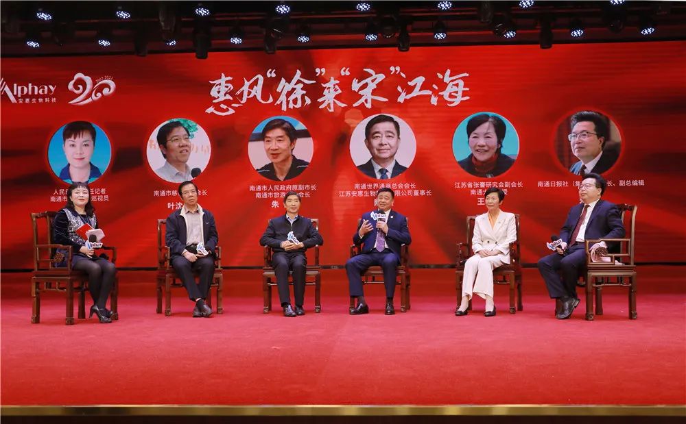 在惠风“徐”来“宋”江海环节,人民日报原主任记者、南通市政协二级巡视员徐爱民和南通日报社(集团)副社长、副总编辑、高级记者宋捷共同采访了南通市慈善会副会长叶沈良,南通市人民政府原副市长、南通市旅游协会会长朱晋,南通世界通商总会会长、安惠公司董事长陈惠,江苏省张謇研究会副会长、南通大学教授王敦琴。他们点赞话剧《謇公惠谈》主题突出、立意高远、形式新颖、表演出彩,体现了安惠以先贤为榜样,在创业中守护初心,在创新中展望未来的大格局。嘉宾们还围绕安惠弘扬中华传统文化,践行张謇慈善精神,发展工业旅游,普及科学知识等话题展开讨论,充分肯定了安惠坚持以文化为引领,走文化立企业、文化兴企的发展之路。