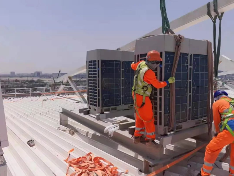 以卡塔尔世界杯的主赛场——被誉为“金色之城”的卢塞尔体育场为例,这里是卡塔尔地标性的体育建筑和世界杯遗产,将举行2022年世界杯赛事的开幕式、揭幕赛、决赛和闭幕式。在世界杯赛事举办期间,这里将容纳四万多来自全球各地的观众,不仅需要实现场馆内稳定、可靠的中央空调解决方案,更需要低碳、绿色的设备以符合本届赛事的可持续目标。由于本届赛事是全球首个“碳中和”世界杯,因此,在场馆的建设和运营中,随处可见绿色、智慧的秘密科技,其中就包括配套既能适应卡塔尔当地炎热的气候,又能在其复杂空间内实现精准冷热温湿控制,还能保证节能低碳的系统和解决方案。