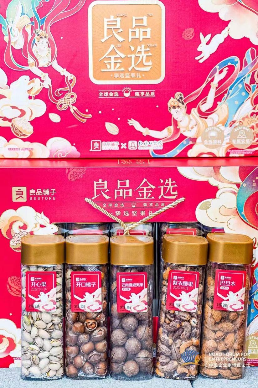 报告分析,近年来,良品铺子多维度提升品牌力。以年货节为例,2019年春节开始,新古典中国风的“拾贰经典”年货礼盒和国内首款敦煌IP礼盒以“潮、美、酷”的设计风格,抓住了一大波国潮审美的新青年。除了产品的迭代升级外,良品铺子还不断加强品牌与用户互动的力度,销售规模处于休闲食品行业前列。 良品铺子在峰会现场还展示了2023年货节礼盒,其产品原料为云南夏威夷果、加州开心果与巴旦木、越南腰果及新疆核桃,成为与会人员的关注焦点。