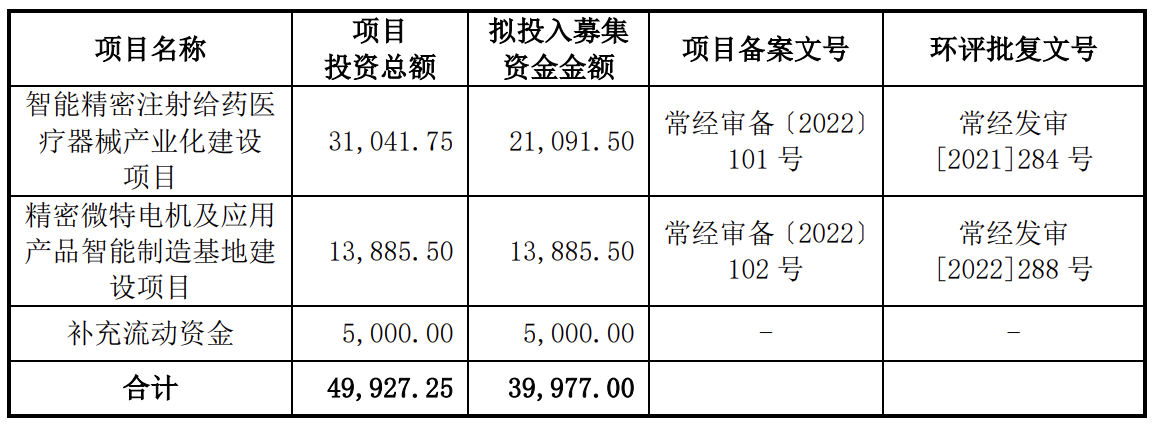 本次IPO,华阳智能募集的资金将投资于以下三个项目:智能精密注射给药医疗器械产业化建设项目、精密微特电机及应用产品智能制造基地建设项目和补充流动资金。