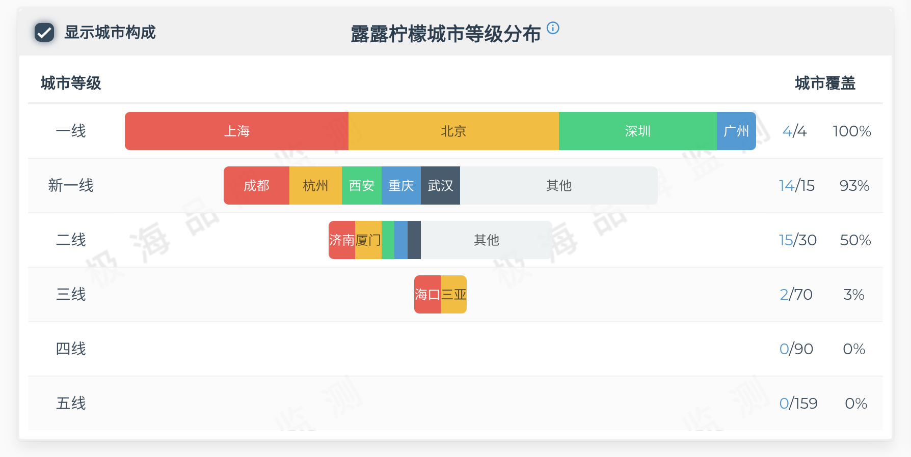 Lululemon门店的城市等级分布 图片来源:极海品牌监测