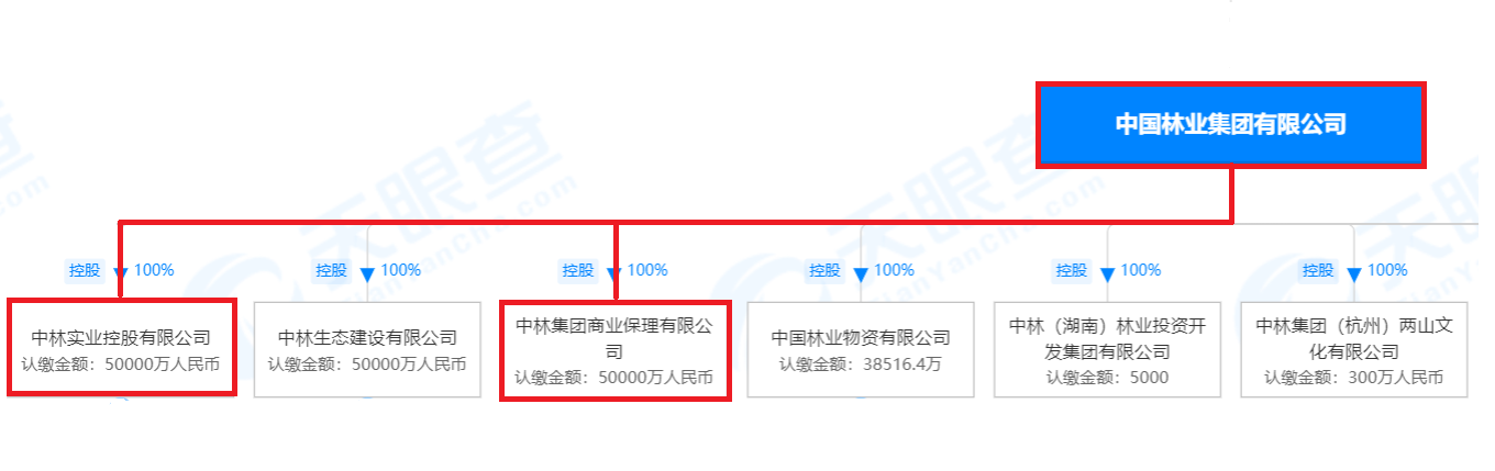 天眼查数据显示,中林时代成立于2018年,位于上海市,是中国林业集团有限公司(以下简称“中国林业集团”)下属的100%全资子公司。