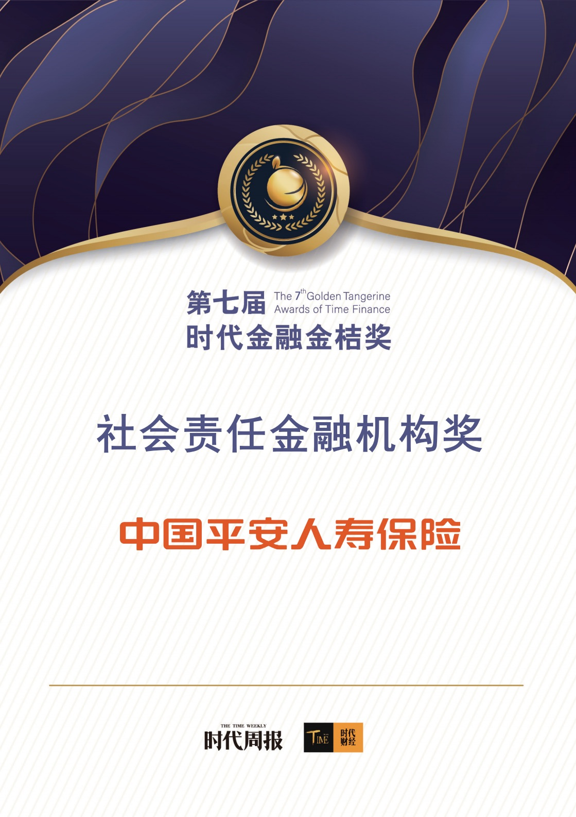 近日,2022年“时代金融金桔奖”榜单发布,中国平安人寿保险股份有限公司(简称“平安人寿”)凭借在服务实体经济、绿色金融方面的实践,以及持续二十多年的公益投入,荣获 “社会责任金融机构奖”。