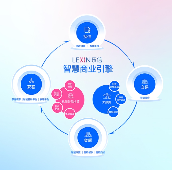 上述经营成果的取得,离不开底层技术的升级迭代。今年上半年,乐信将此前多年积累的技术能力进行整合、升级为智慧商业引擎,这是一套以大数据、机器智能决策为基础,涵盖获客、授信、交易、贷后全流程的系统。它既是企业的大脑,也是企业的双手,提供一整套分析和决策的工具,帮助业务实现敏捷运营、快速迭代,极大地提升决策、经营和业务运营效率。