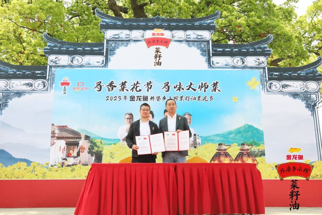 每年的春季,如果选择踏青,最美的风景莫过于金灿灿的油菜花。4月8日,金龙鱼外婆乡小榨菜籽油一年一度的菜花节暨京东“小榨菜油文化”传承战略签约仪式在江西省安义古村落——罗田村隆重举办。来自益海嘉里、京东的工作人员、各大媒体朋友与当地民众一起共赏春日花海,寻味小时候的菜油香。