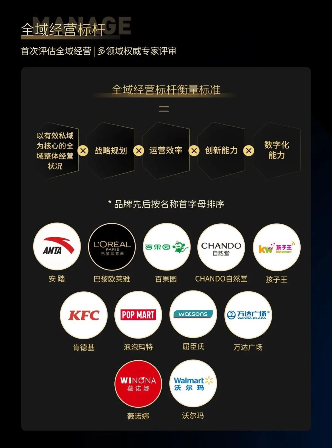 为此,今年榜单首次引入“全域经营标杆”,由专家团基于全域经营整体状况、战略规划、运营效率、数字化能力、创新能力五大维度推选。