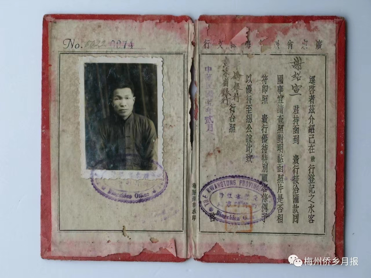 梅州籍水客谢绍宣所持的水客汇款介绍书 来源:侨乡梅州微信公众号
