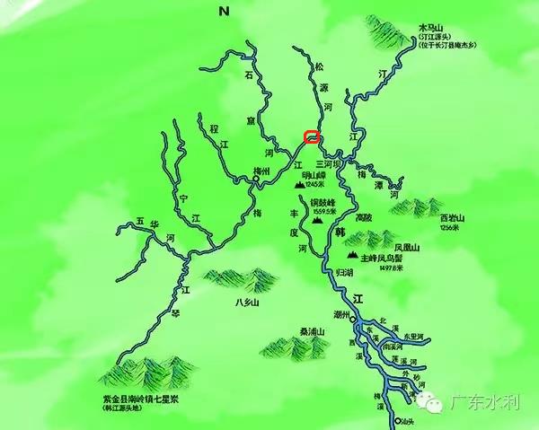 松口,在如图所示红框位置 图片来源:广东水利官方微信公众号