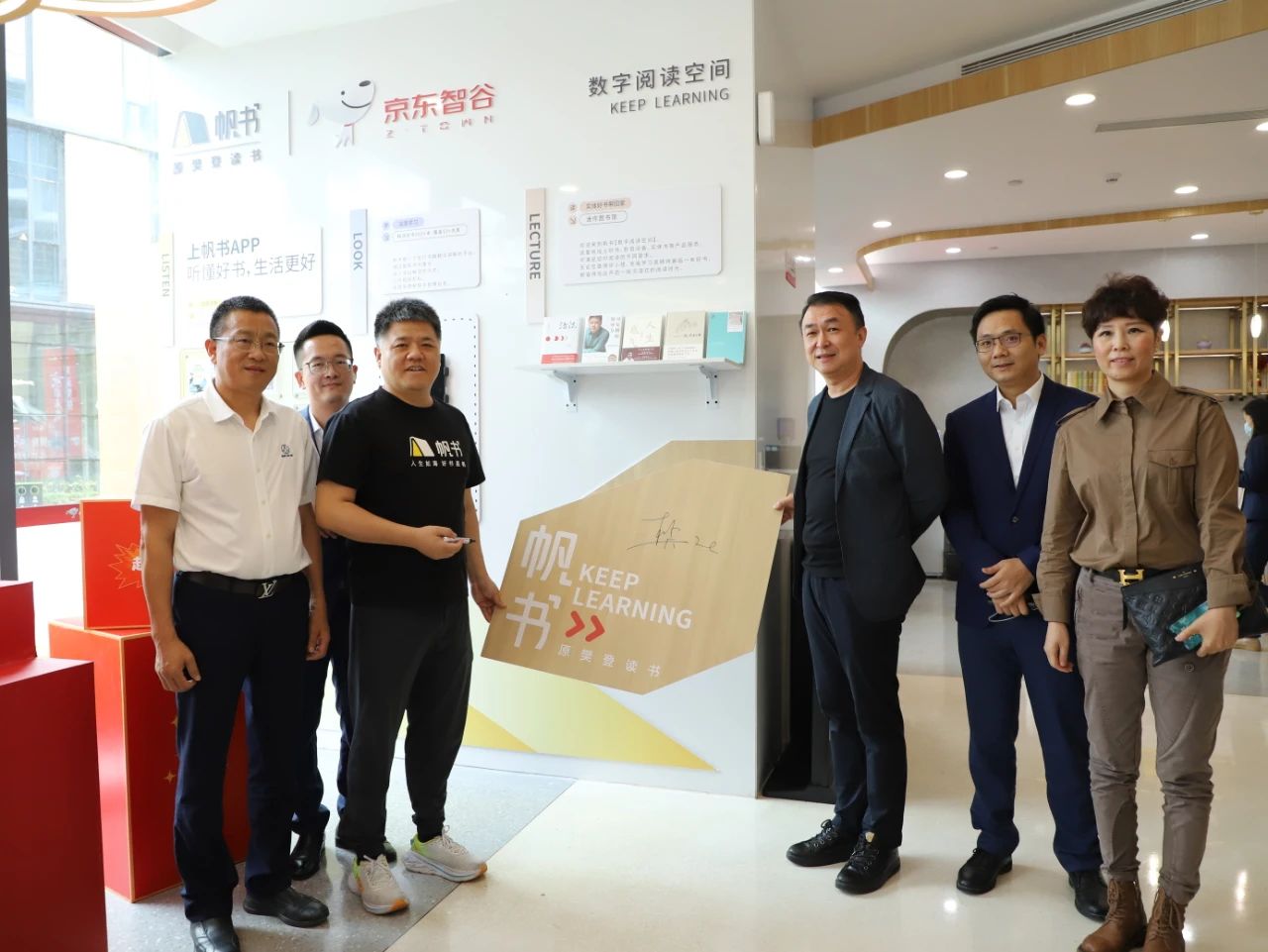 对于京东智谷来说,此次邀请樊登,不单是一场活动,更是“为企业知识赋能”的重要契机。因此,京东智谷与帆书(原樊登读书)展开深度合作,共同打造“京东智谷帆书数字阅读空间”。樊登在现场为数字阅读空间签名留念。