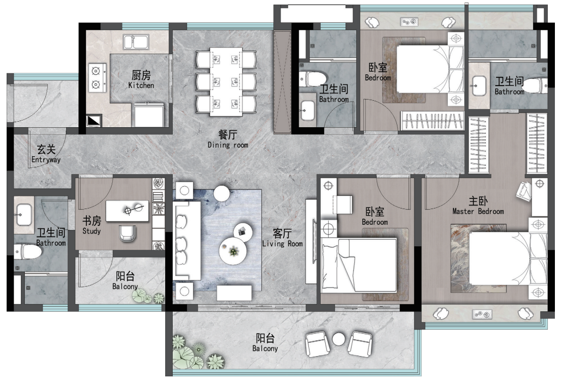 建面约107m² | 4空间二厅二卫