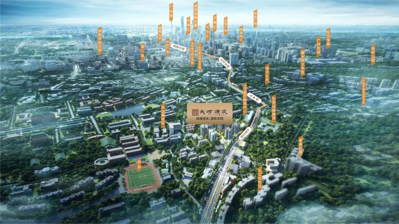 天河源筑,位处天河芯·华南理工旁,一面近享城市封面繁华,一面感受浓厚大学人文。毗邻天河核芯珠江新城CBD,约4.5km享珠江新城顶级配套。
