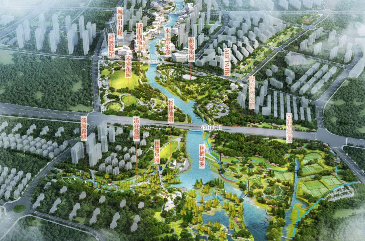 花山生态新城,绿地和水域面积占比达50%以上