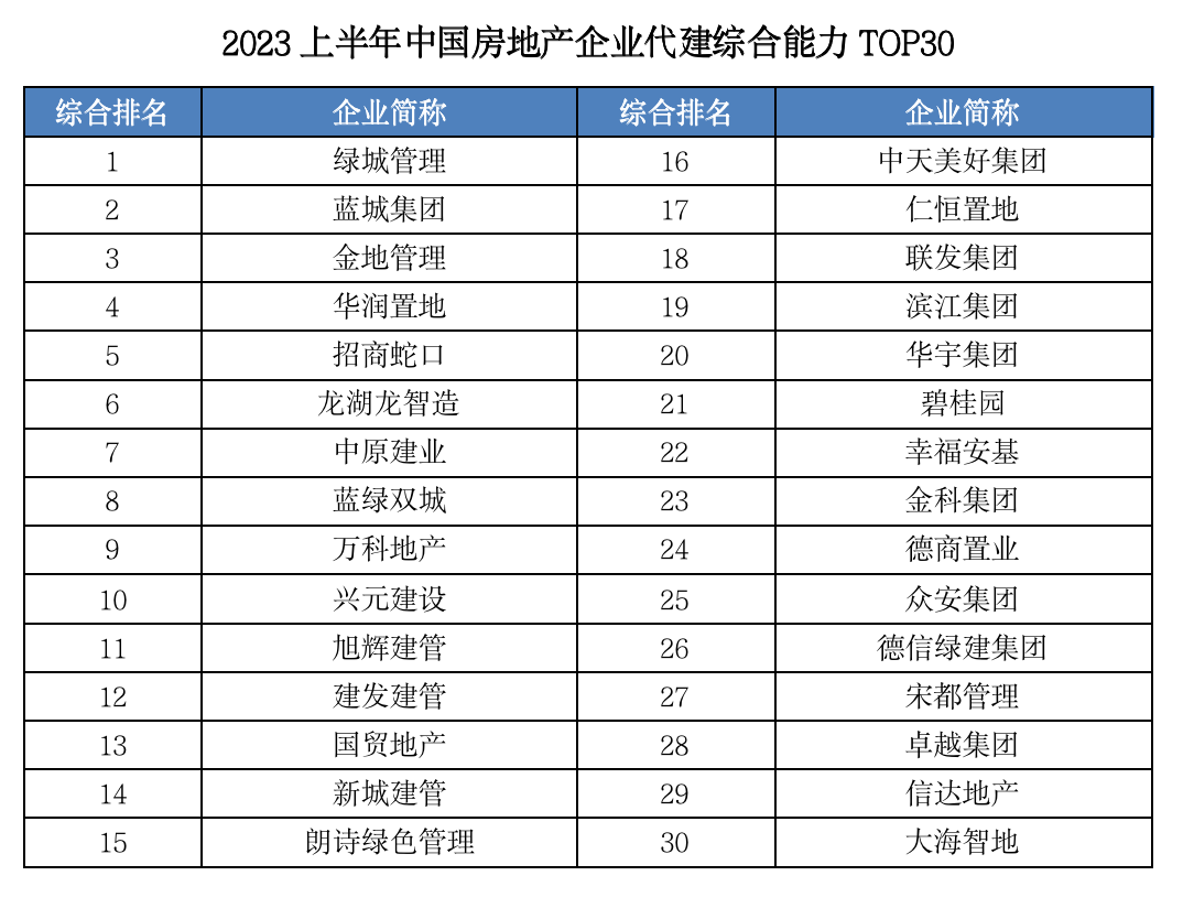 克而瑞发布代建综合实力榜,绿城管理、蓝城集团、金地管理位居前三