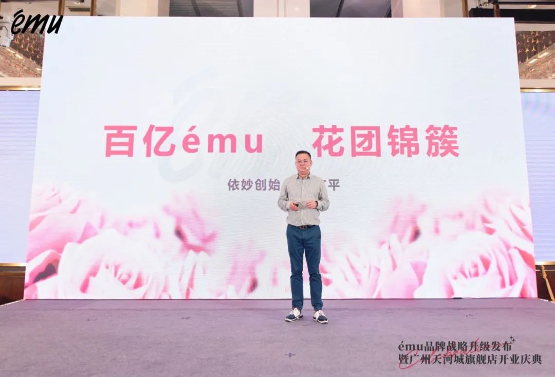 发布会上,ému品牌创始人车广平上台发表了《百亿ému,花团锦簇》的主题演讲,正式发布ému品牌“十年百亿”的战略目标,以及品牌未来的策略方向。