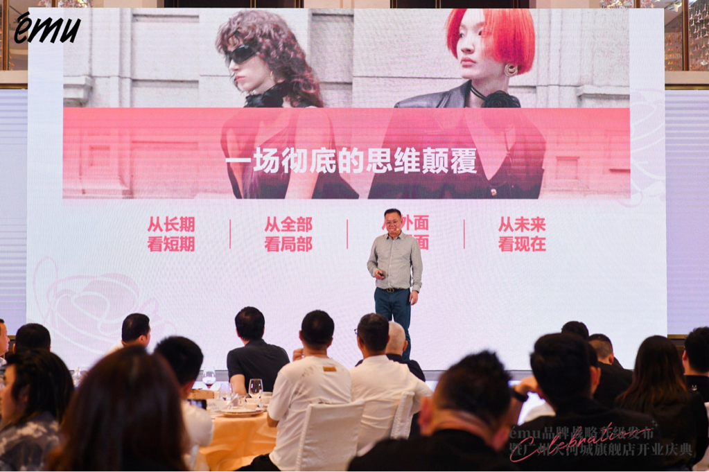 23年前,ému以快速实现时尚为经营理念,开创了国内本土品牌新的市场模式,领先行业。23年后,在商业向阳、服装行业洗牌谋变的大环境下,ému重新出发、升级焕新。ému风格不设限的产品系列,以旗舰店全面展示品牌的最新理念、视觉形象,符合行业大趋势,引领时尚潮流。“我相信,ému品牌此次天河城全球旗舰店开业及战略升级,是当下服饰企业多维进阶的优秀范本。”周艳斌表示。