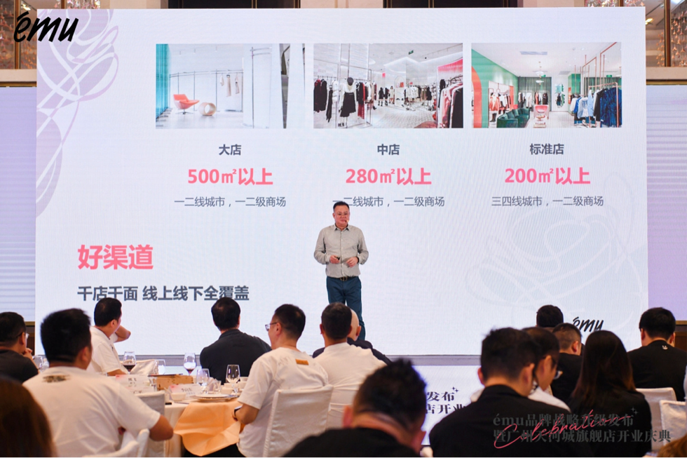ému的线下渠道将建立三种门店模型:分别为经营面积500m²以上的大店、经营面积280m²以上的中店,以及经营面积200m²以上的标准店,其中大店和中店主要布局一二线城市的一二级商场;标准店则布局三四线城市的一二级商场。