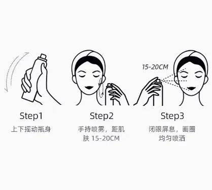 在提及对面部喷涂的品牌中,仅玥之秘、安热沙附上了对面部喷涂时需“闭眼屏息”,以防使用过程中不慎吸入的使用提示。