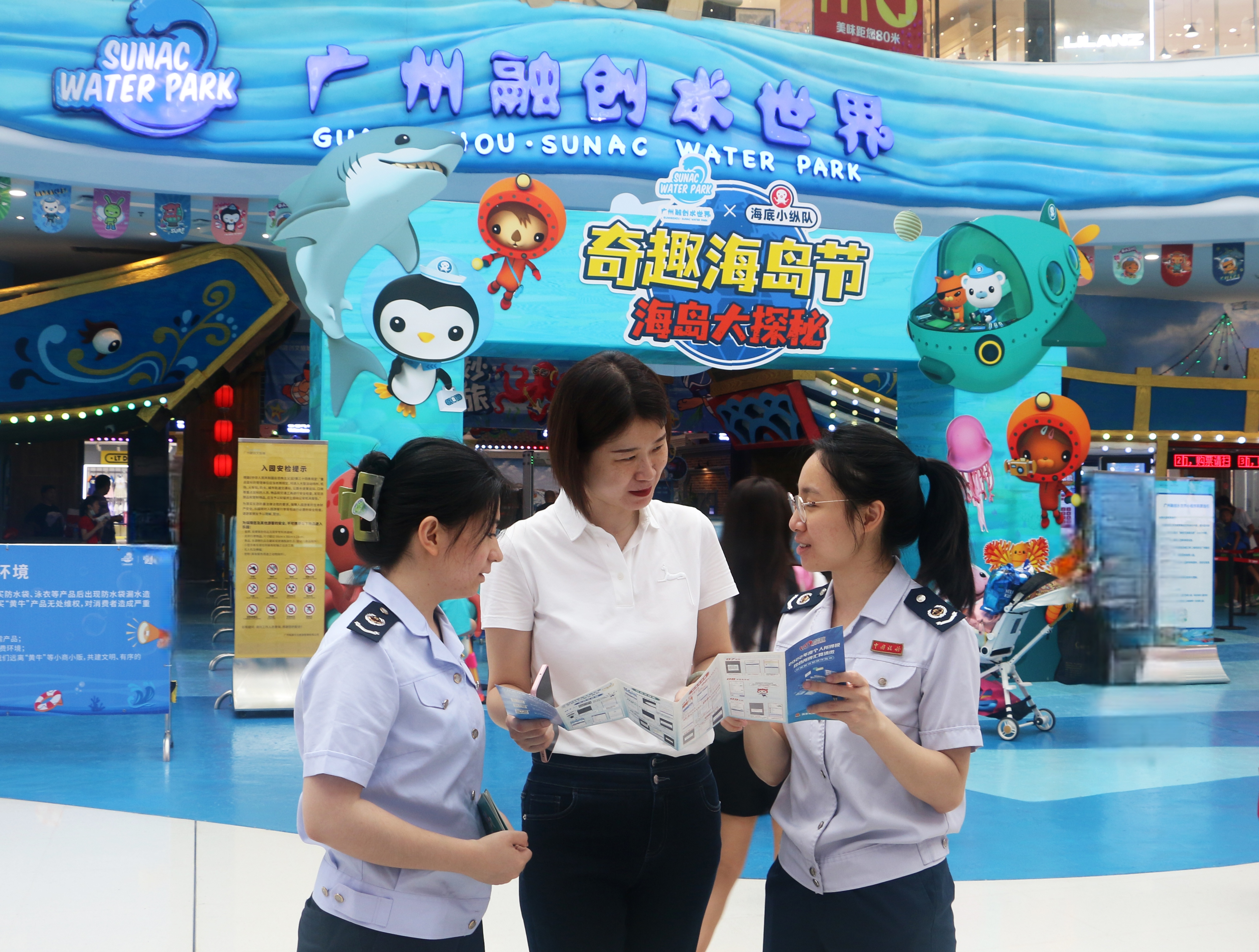 广州市税务部门工作人员在广州融创水世界(广州融创热雪奇迹)宣传税费优惠政策