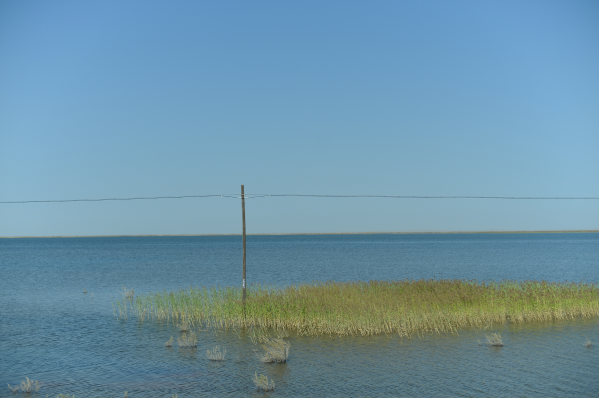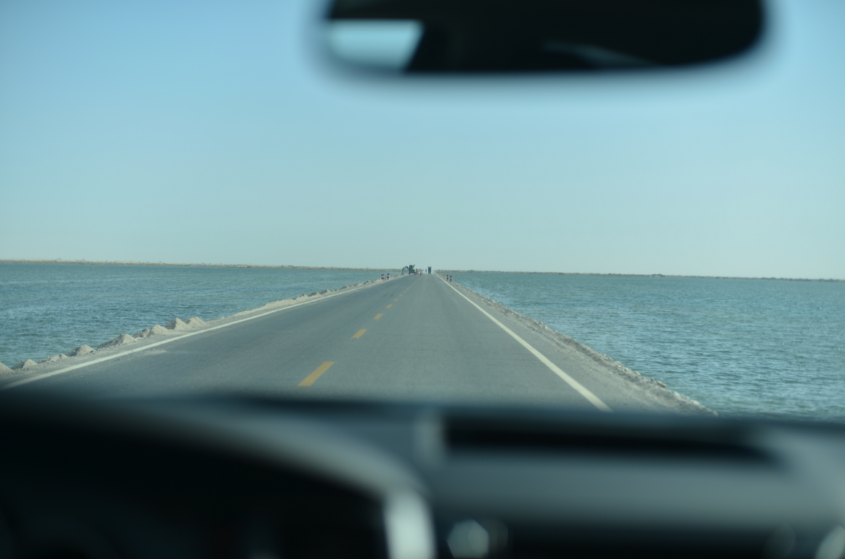 新疆某水库中的公路。时代周报 黎广/摄