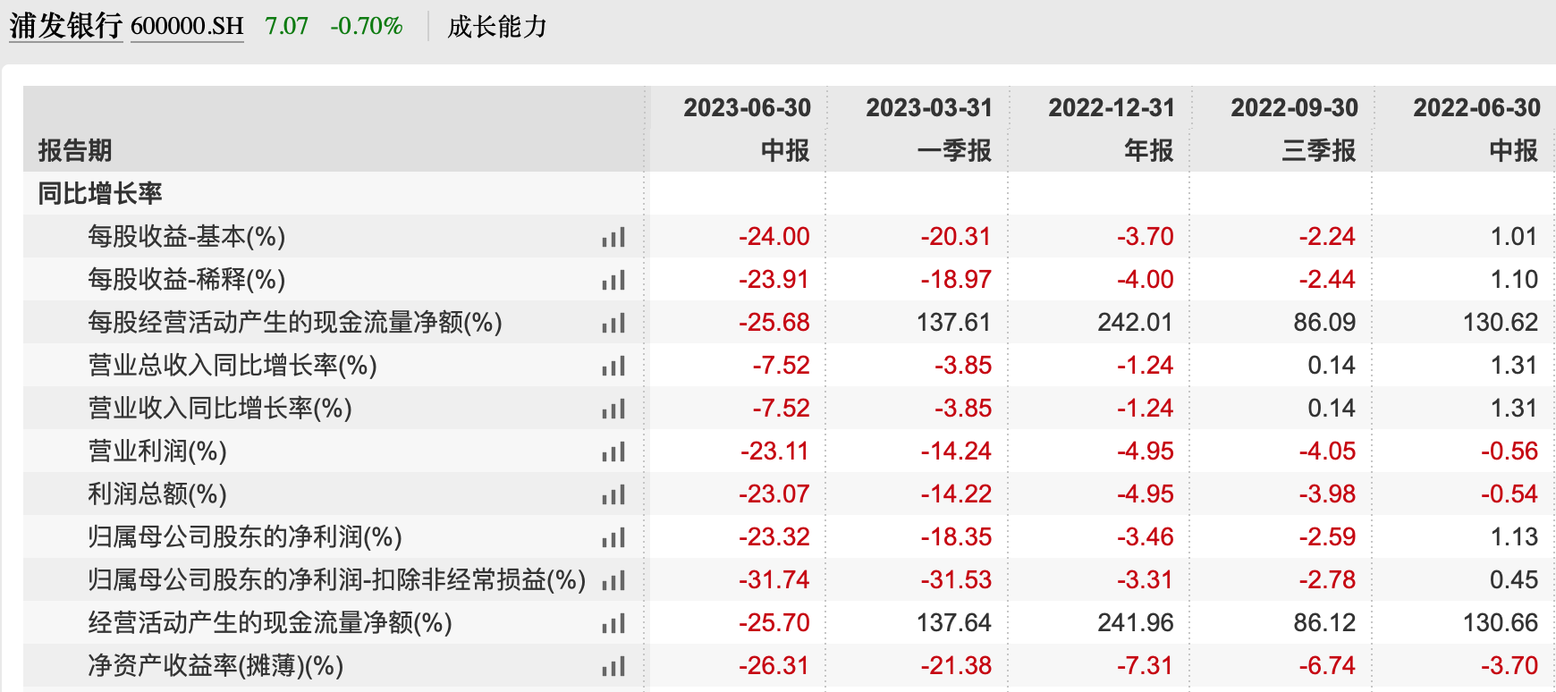 比如备受关注的浦发银行,自2022年下半年以来,该行营业收入与归母净利润连续四个季度均出现同比下滑。