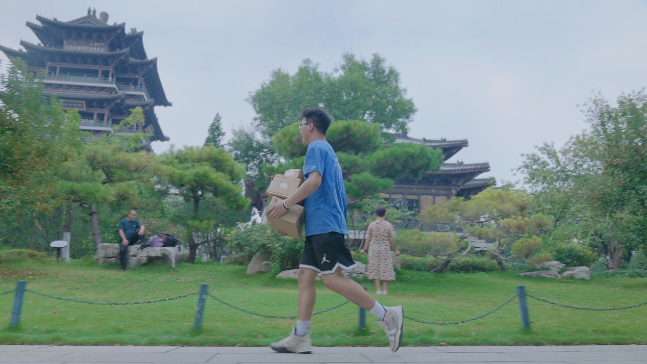△奔跑送货的张学智
