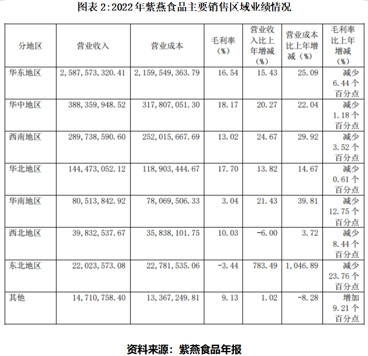 2022年报显示,紫燕食品华东地区的营收为25.88亿元,同比增长15.43%。