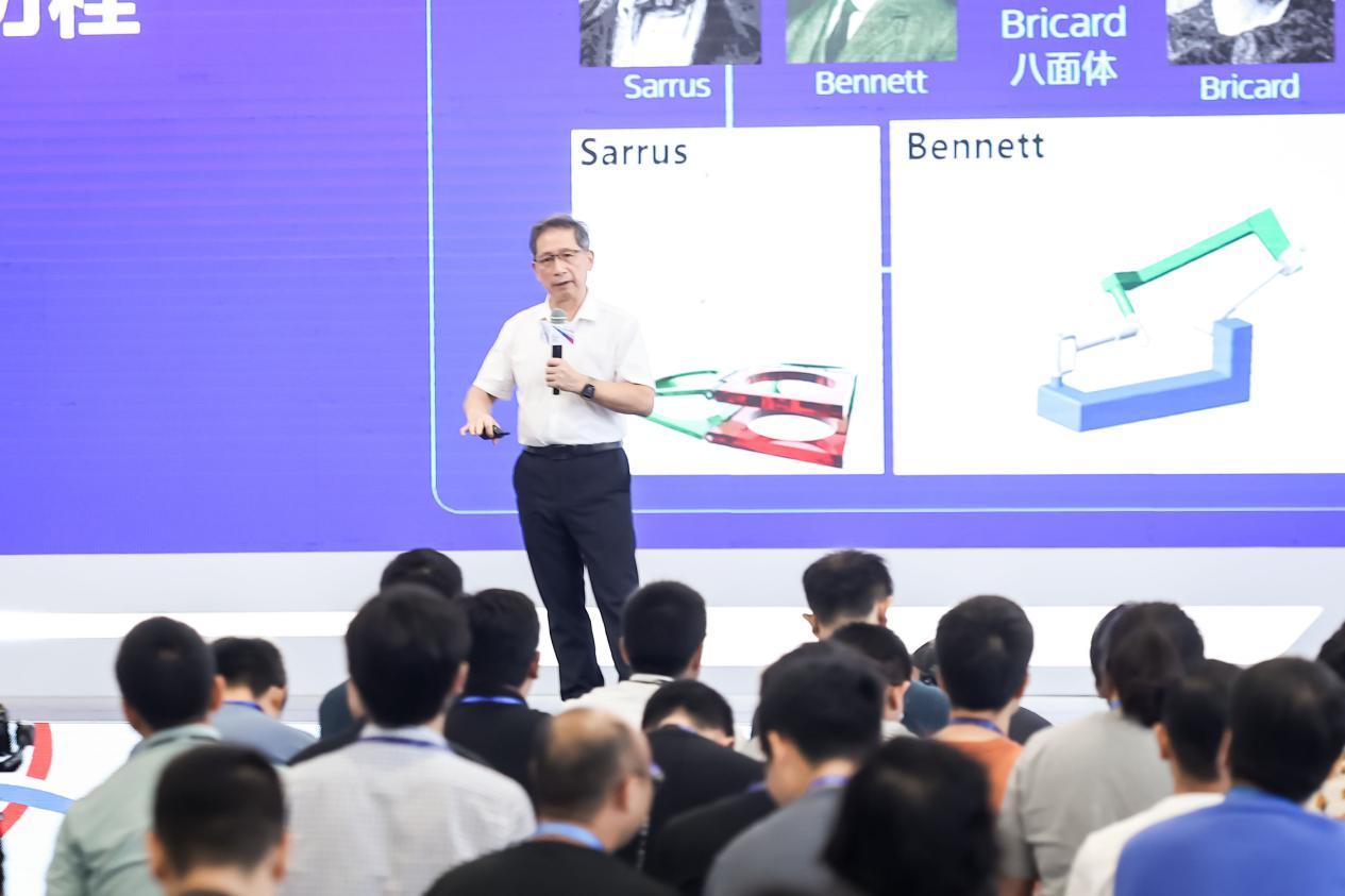 全球知名机器人专家、南方科技大学机器人研究院院长、英国皇家工程院院士、欧洲科学院院士戴建生教授做了《新一代机构智能进化机器人进展与前景》的主题演讲。他认为,机器人和人体结构是一样的,人类的骨骼就是机器人的骨架,骨架就确定了机器人的运动方式和可控空间,再通过自然界中生物的启发,将生物进化应用到机器人机构的改变当中。在分享中,戴建生提到了变胞原理,也就是机器人采用了生物的原理进行变胞,通过躯体的改变、组合,整体重新构造,从而让机器人的构态多样化。随着变胞理论和重构理论的推演发展,基于机构智能的变胞灵巧手应运而生,紧跟其后的是能够为了适应环境而改变自身躯体的行走机器人,这些机器人将会在抢险救灾、环境探测、家用机器人等场景中展开应用。关于变胞灵巧手的未来应用,从国家政策层面上说,戴建生认为人口老龄化将会促进服务机器人的发展。而进化机器人,戴建生认为将会存在软硬融合、虚实融合、人机融合三大趋势。