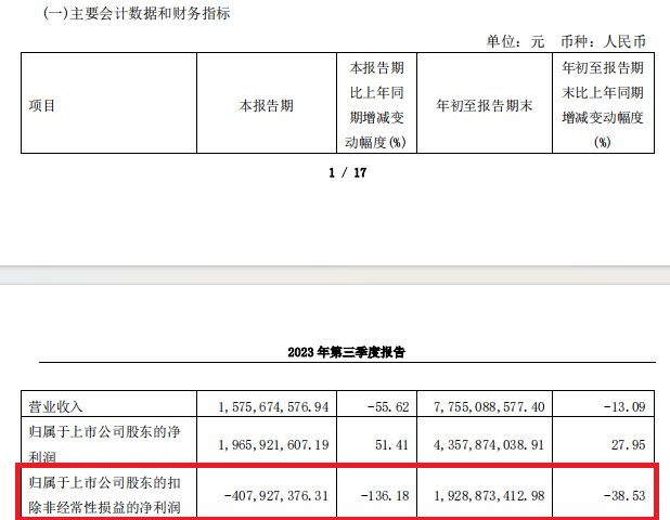 但是,扣非之后,光大证券2023年前三季度的归母净利润约19.29亿元,同比下降38.53%。