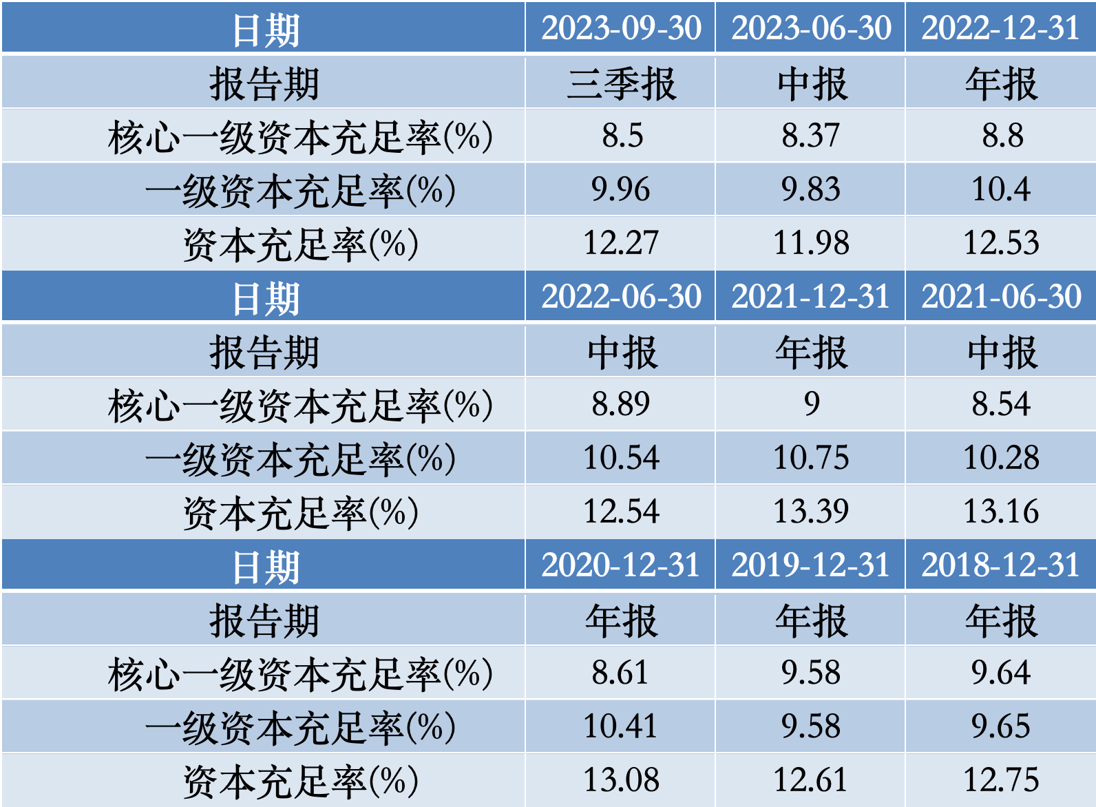 截至2023年6月30日,湖南银行的资本充足率、一级资本充足率、核心一级资本充足率分别为12.27%、9.96%、8.5%,虽然较2023年半年报中的数据有提升,但仍低于2022年末的同期数据。