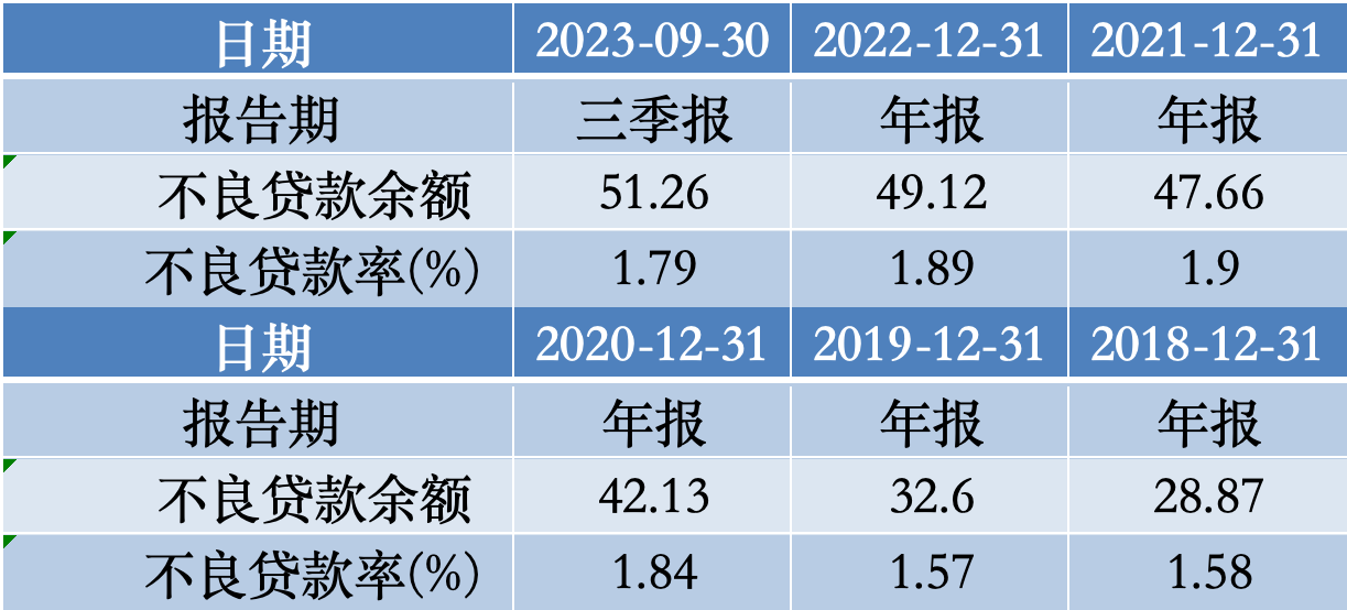 截至2023年9月30日,湖南银行的资产总额4962.98亿元,贷款余额为2857.26亿元;离今年的目标分别还相差37.02亿元、142.74亿元。虽然不良贷款率为1.79%,相比于2022年末下降了0.1%,但是不良贷款余额为51.26亿元,相比于前几年并未有下降。