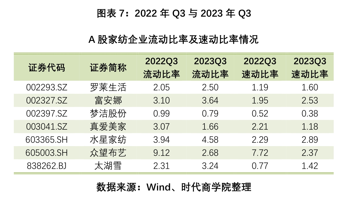 值得一提的是,若按企业数量看,7家家纺企业中,有4家企业的流动比率、速动比率同比上升。