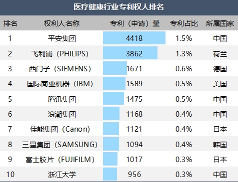 中国平安位列医疗健康行业的专利申请总量排名第一