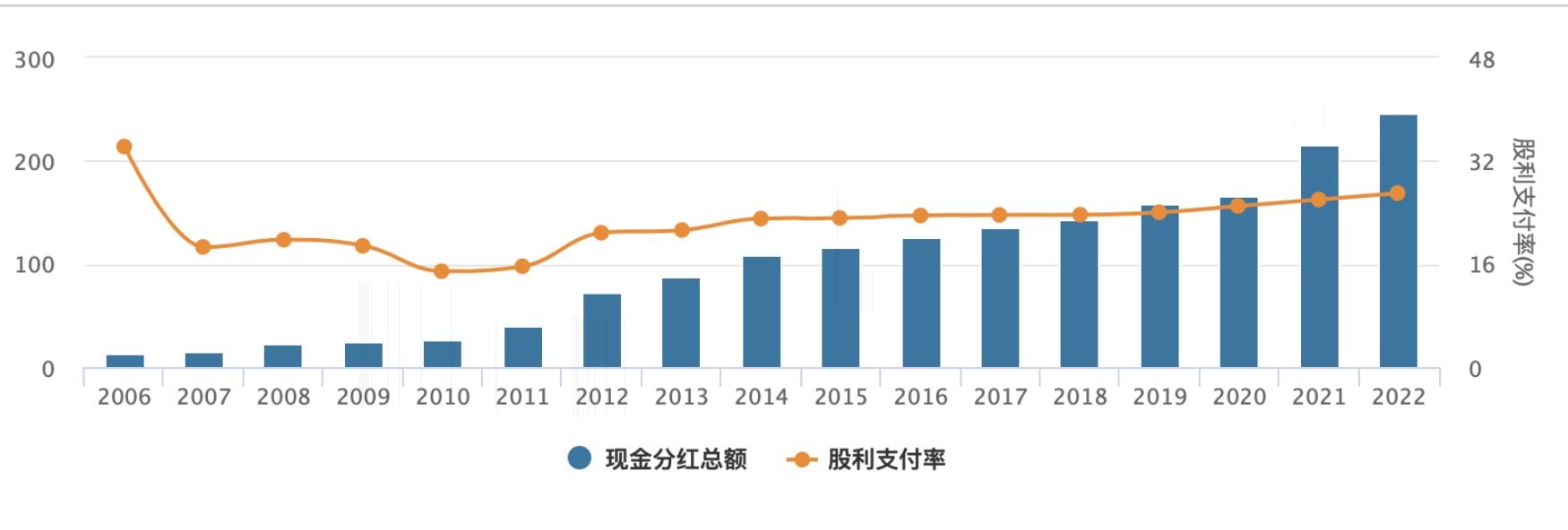 兴业银行2006年~2022年分红情况。来源:Wind