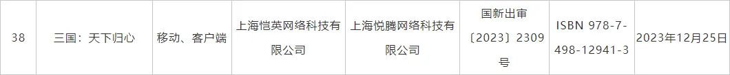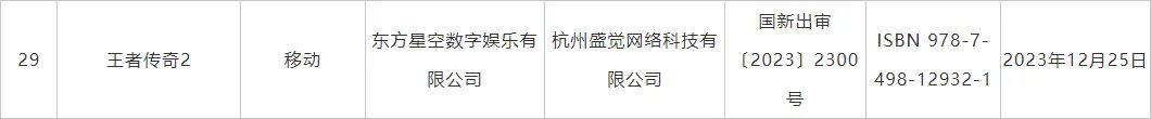 12月25日,国家新闻出版署官方公示了2023年12月份国产网络游戏审批信息,共有105款游戏获批。东方星空数字娱乐有限公司出版,恺英网络旗下杭州盛觉网络科技有限公司运营的《王者传奇2》,及恺英网络旗下上海恺英网络科技有限公司出版,上海悦腾网络科技有限公司运营的《三国:天下归心》顺利取得版号。