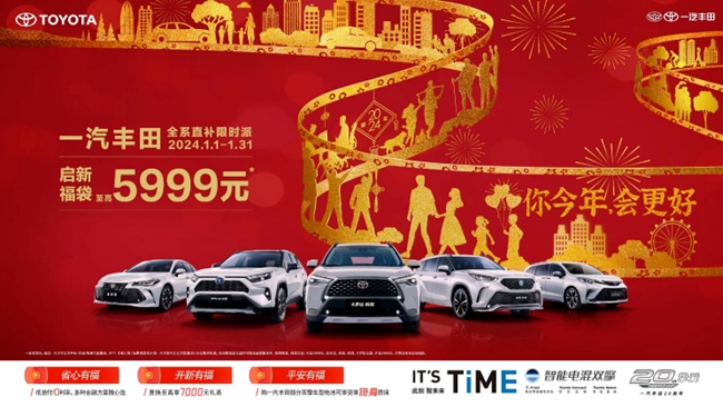 一汽丰田也开启限时全系直补,即日起至2024年1月31日,锐放、RAV4荣放、皇冠陆放、格瑞维亚、亚洲龙等一众车型享受启新福袋,至高5999元、低首付/0利率等丰富的金融方案及至高7000元置换补贴,部分双擎车型还可享受电池终身质保。
