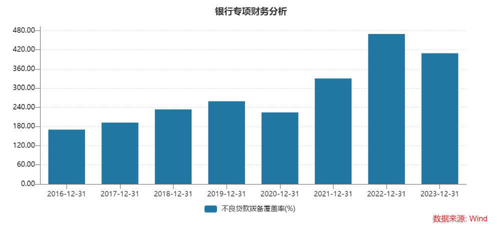 江阴银行2023年末的拨备覆盖率为409.46%,较三季度末下降63.71个百分点,较2022年末469.62%减少60个百分点左右。