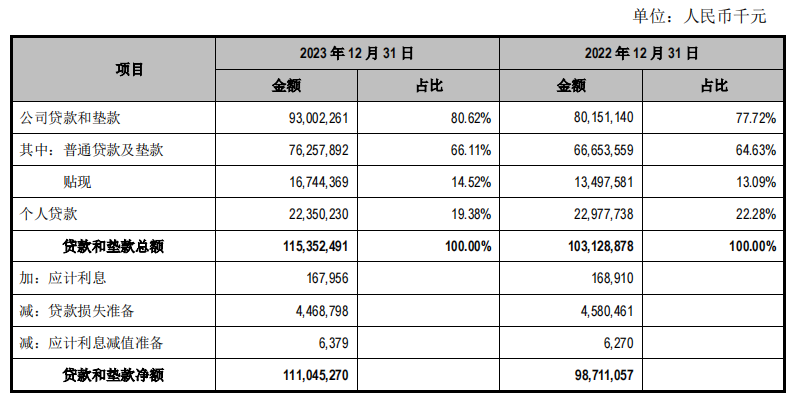 具体数据来看,江阴银行2023年末的“公司贷款和垫款”约为930.02亿元,较2022年末801.51亿元同比增长约16%;“个人贷款”约为223.50亿元,较2022年末229.78亿元同比增长下降约2.73%。