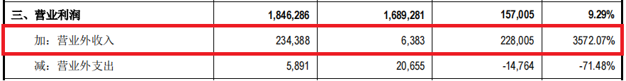 这其中的“奥妙”就来自营业外收入,江阴银行2023年年报显示,当期营业外收入约为2.34亿元,较2022年末0.06亿元增加了2.28亿元,同比增长3572.07%,增势惊人。