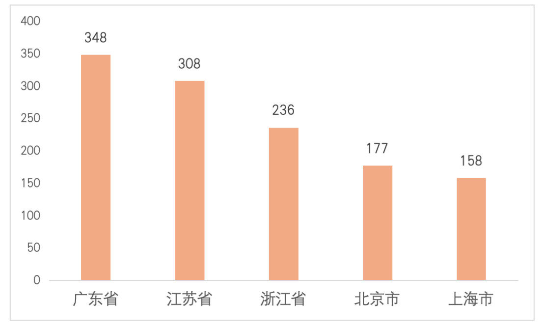 不仅如此,截至2024年6月5日(含),广东省共有876家A股上市公司,其中348家属于战略性新兴产业,高于江苏省(308家)和浙江省(236家)。从行业层面看,广东战略性新兴产业的A股上市公司主要集中于新一代信息技术、高端装备制造和新材料产业。