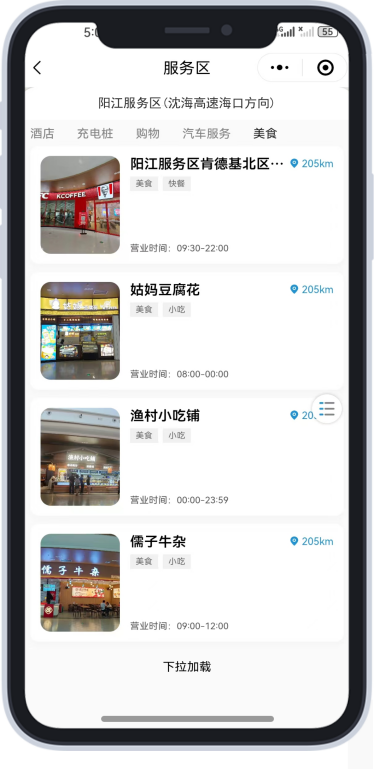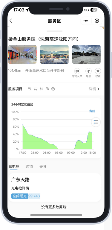 服务区业态信息页面 服务区充电状态页面 服务区加油页面