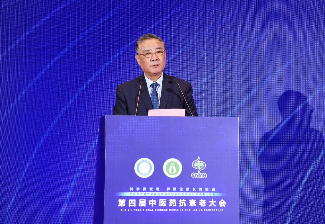 4月11日,世界中医药学会联合会主席马建中在第四届中医药抗衰老大会上致辞。