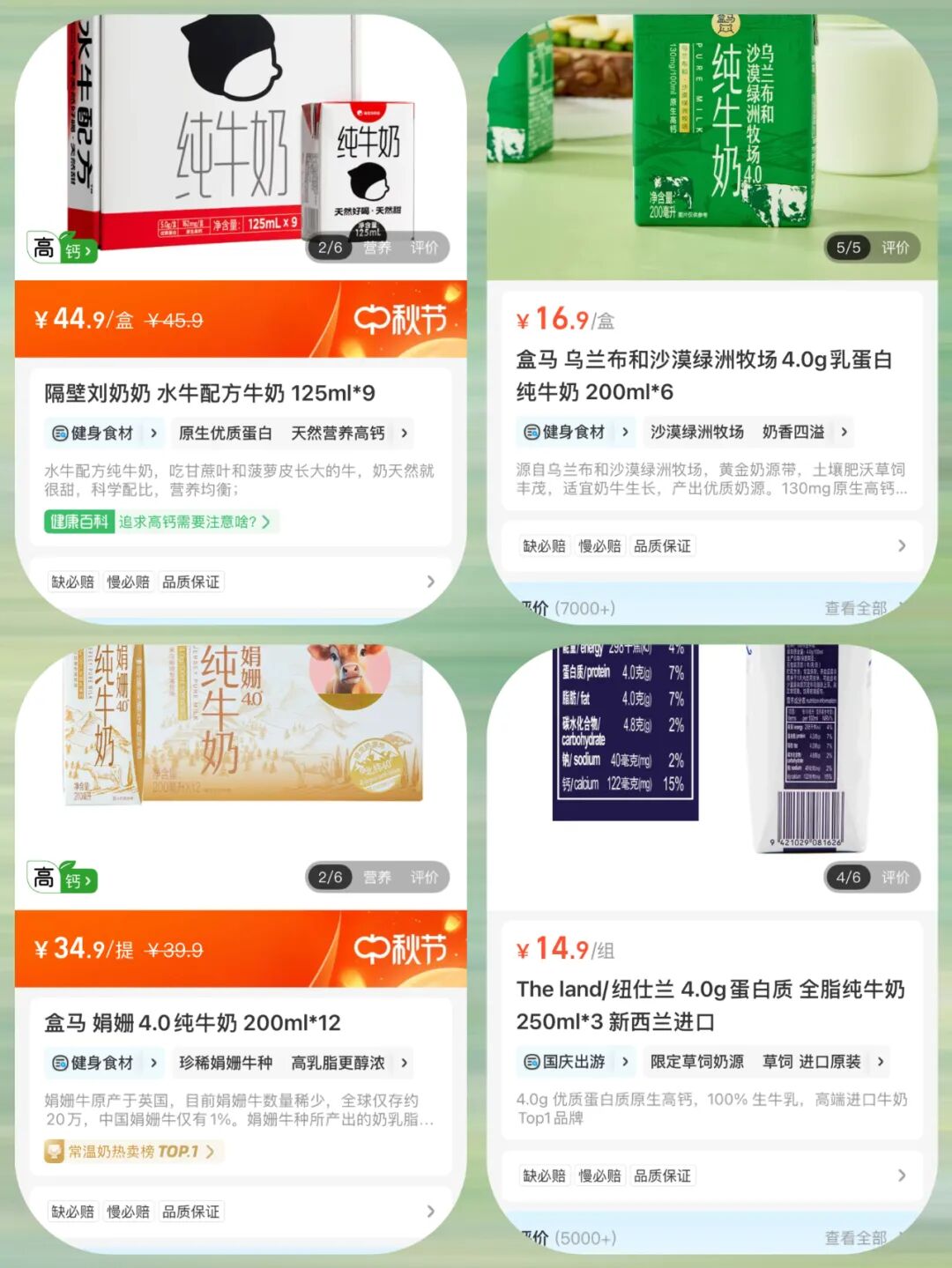 若进一步对比高端产品,这一差距更为明显。《消费者报道》对比了同一电商平台上的4款产品,当蛋白质含量均达到4.0g/100mL时,水牛奶每100毫升售价高达4.0元,而特定牧场纯牛奶、娟姗纯牛奶和进口纯牛奶的价格分别为1.4元、1.5元和2.0元。由此可见,水牛奶的价格不仅远高于普通纯牛奶,也显著超过其他各类高端牛奶。