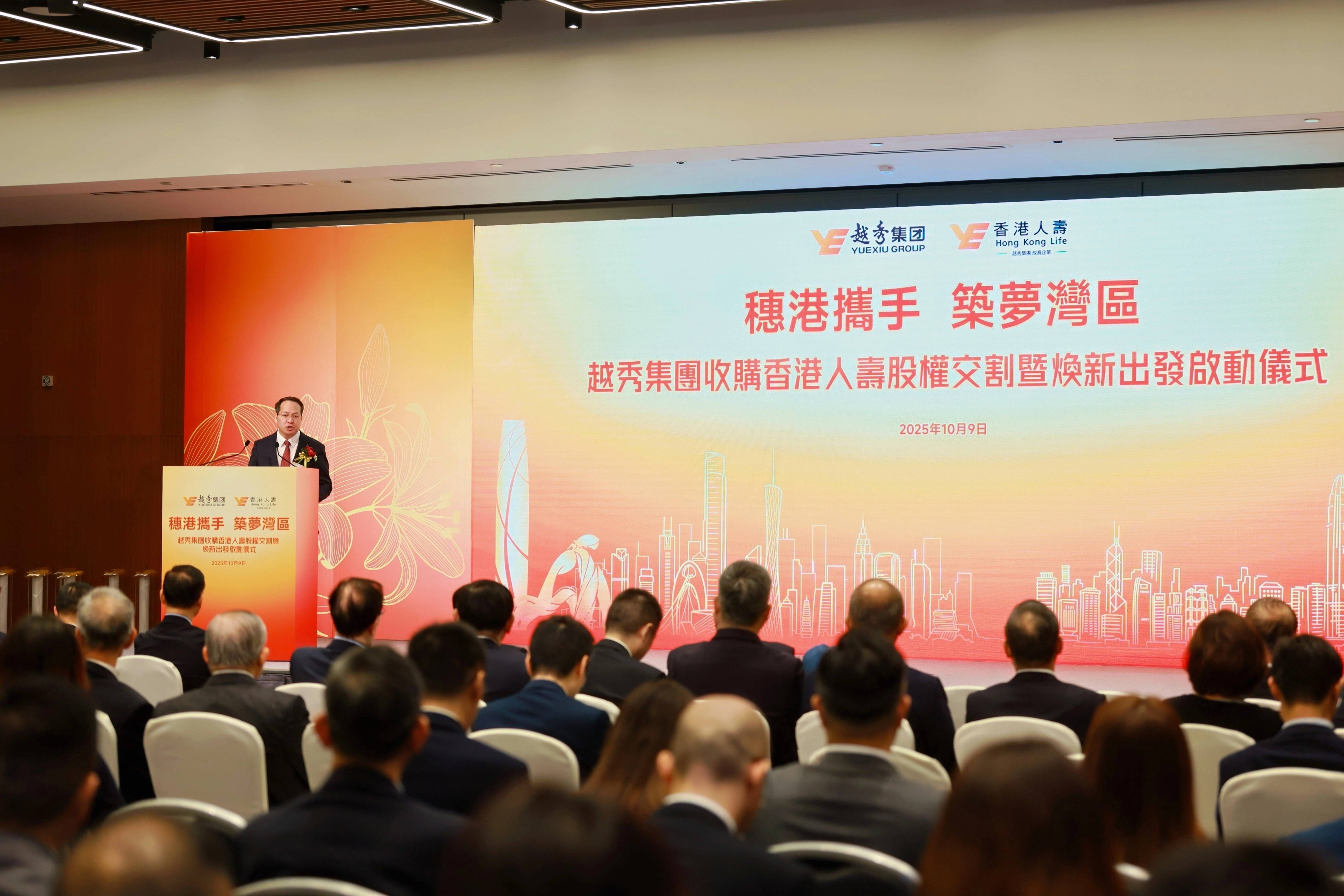 仪式现场,越秀集团董事长陈强表示,集团将倍加珍视香港人寿的经营积累和品牌沉淀,提升发展格局,加强服务供给、资产配置、科技创新、风险防控、价值创造等核心能力建设,进一步提升香港人寿的经济价值、社会价值、客户价值,不辜负社会各界的信赖。