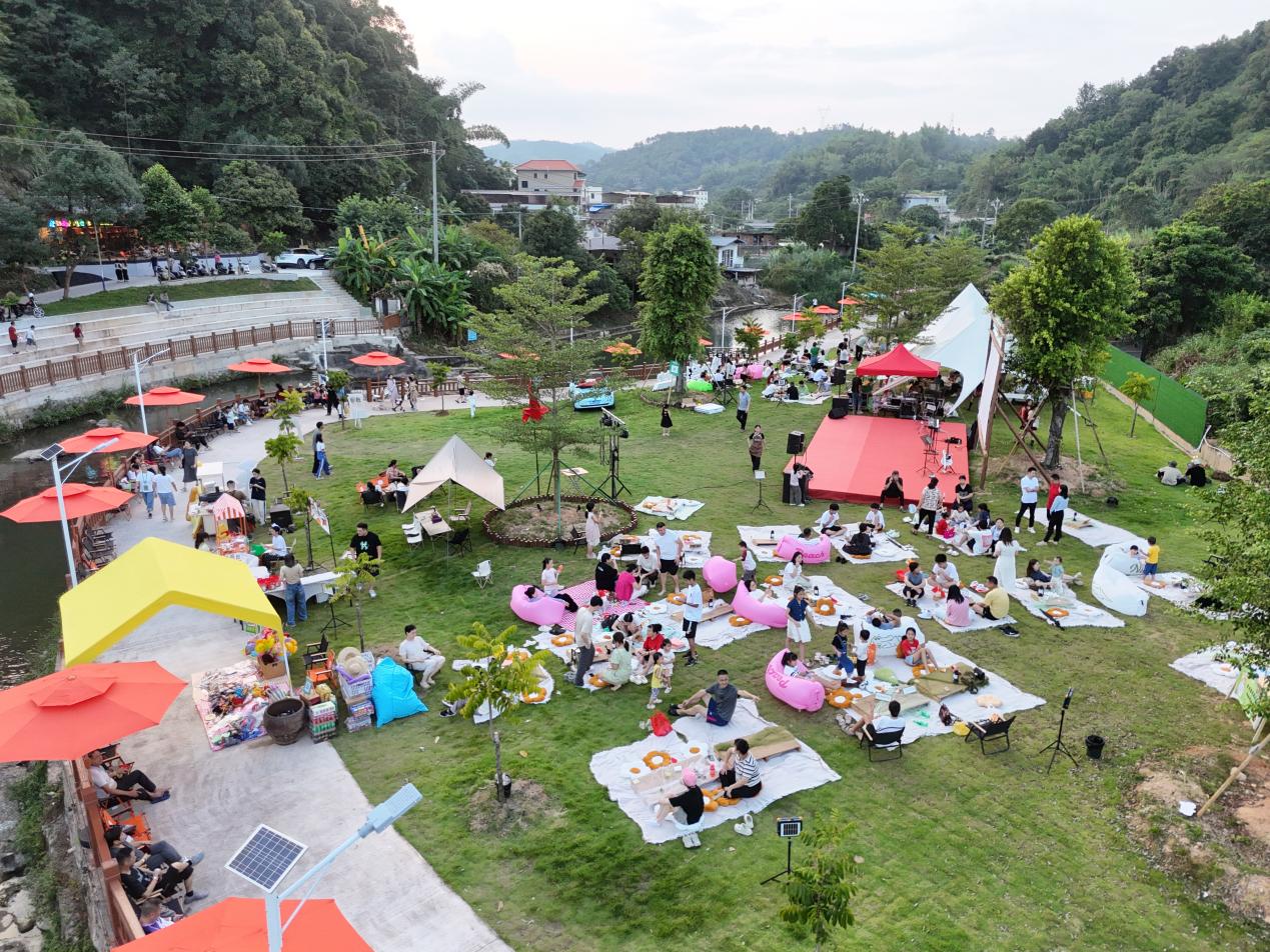 位于长沙镇大密村坑尾的“种院子的熊赳赳”IP打造了一场音乐与乡村的跨界派对,成为假期一大亮点。不少游客除了在咖啡厅品尝香浓咖啡,还在大草坪上享受微风带来的惬意。该景点还推出了系列活动,涵盖民谣、摇滚和本地山歌等多元音乐演出,现场还设有山野集市,汇集客家特色美食、饮品和手工艺品。“我们当初打造‘种院子’,就是想给城市人提供一个能暂时逃离喧嚣、回归本真的地方。希望通过音乐这个载体,让大家在优美的田园风光里放松身心。”种院子创始人、主理人熊赳赳表示,“双节”期间人流量达1万人次,大部分都是举家出游或者朋友结伴出行。