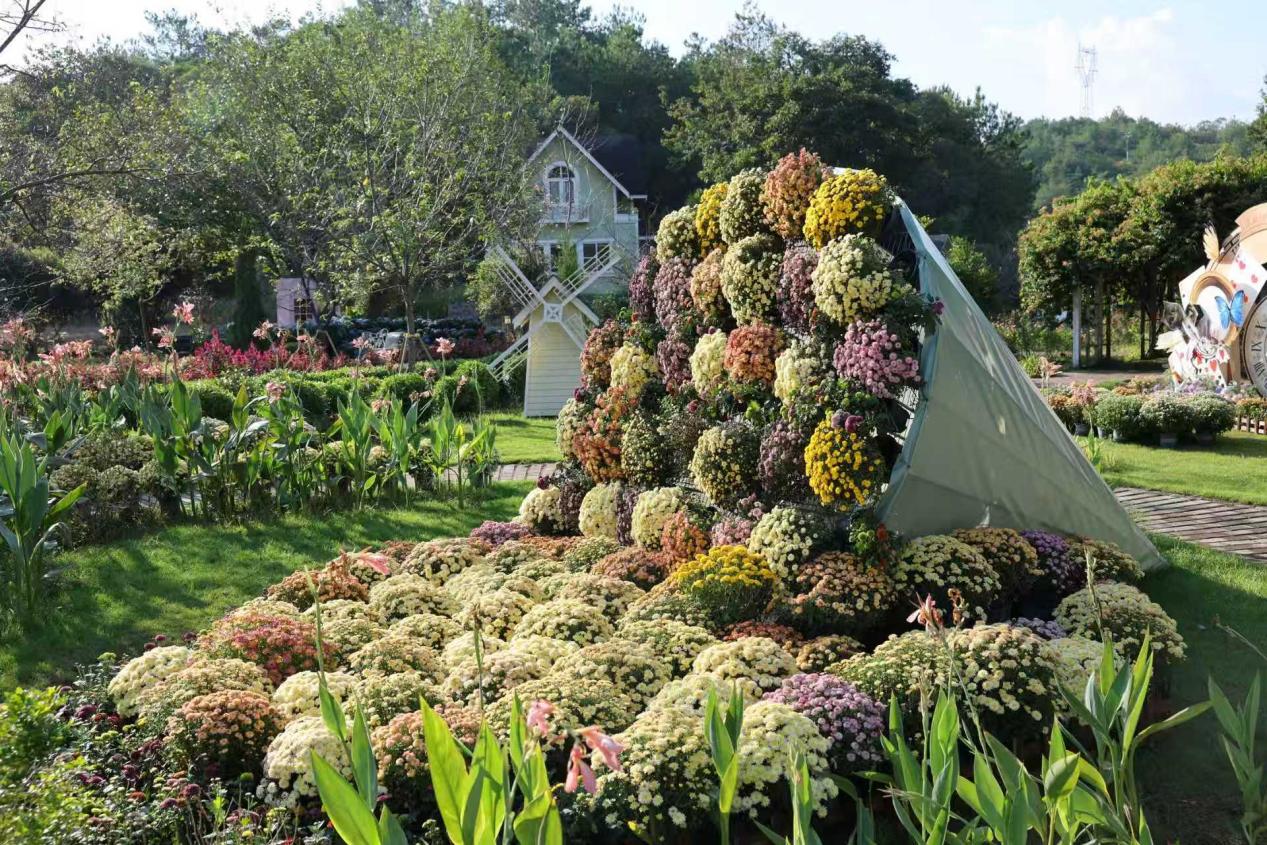 城北镇的梅州爱丽丝庄园上千株菊花竞相绽放。