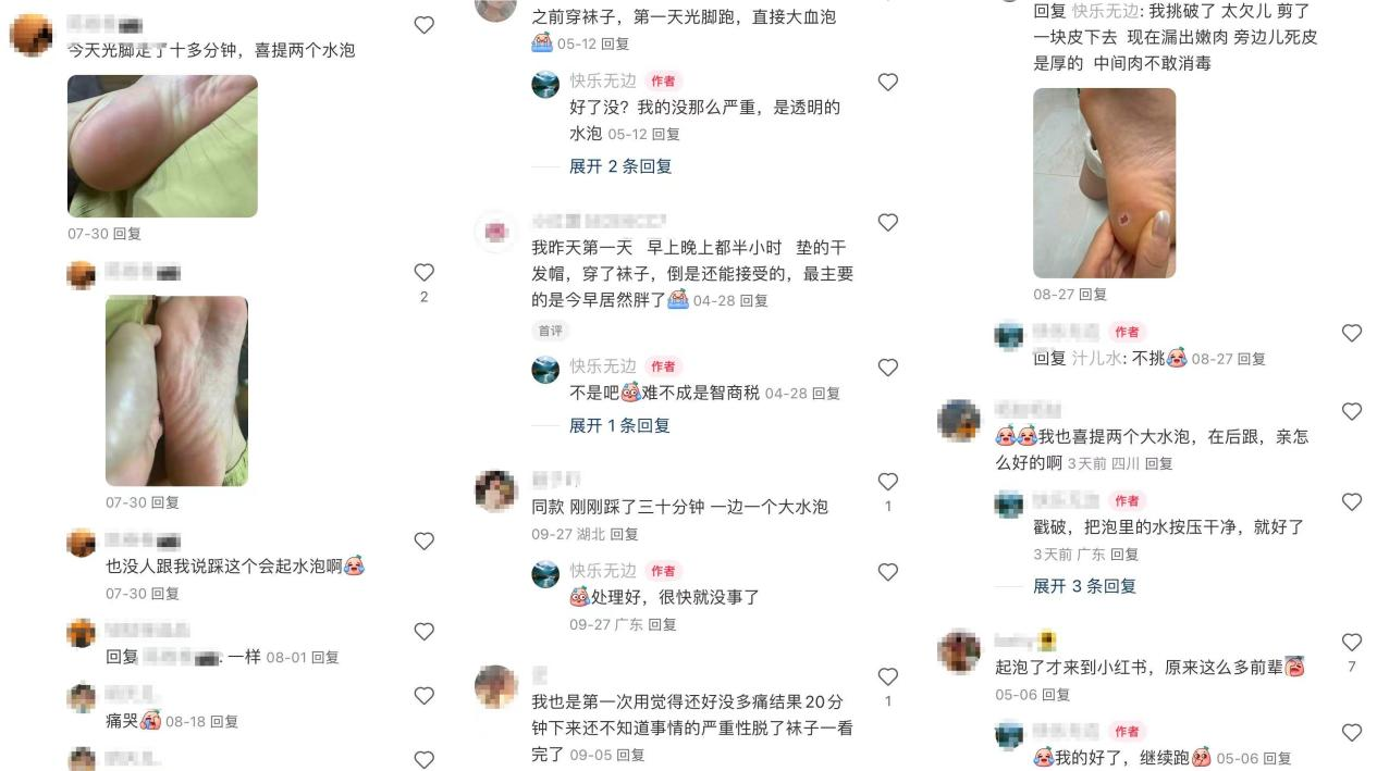 在社交平台上,也有不少网友发帖称自己使用指压板后脚底起水泡。相关评论区亦有众多网友道出自己的相同经历,还有网友分享使用指压板的技巧。