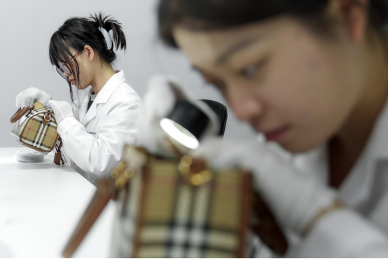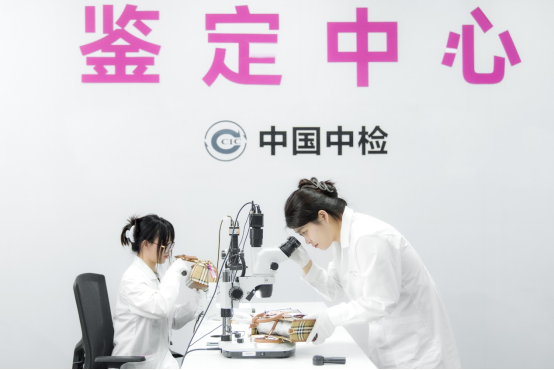 唯品会CEO助理刘露讯介绍,中检鉴真在唯品会位于湖州、郑州的高端消费品仓库中分别建立了鉴定实验室,按照订单需求足额配备持证资深鉴定师,并借助高倍显微镜、金属探测仪、色谱仪等尖端设备,对仓内包括包袋、服饰、珠宝、高端酒水等在内的所有高端消费品进行鉴定。